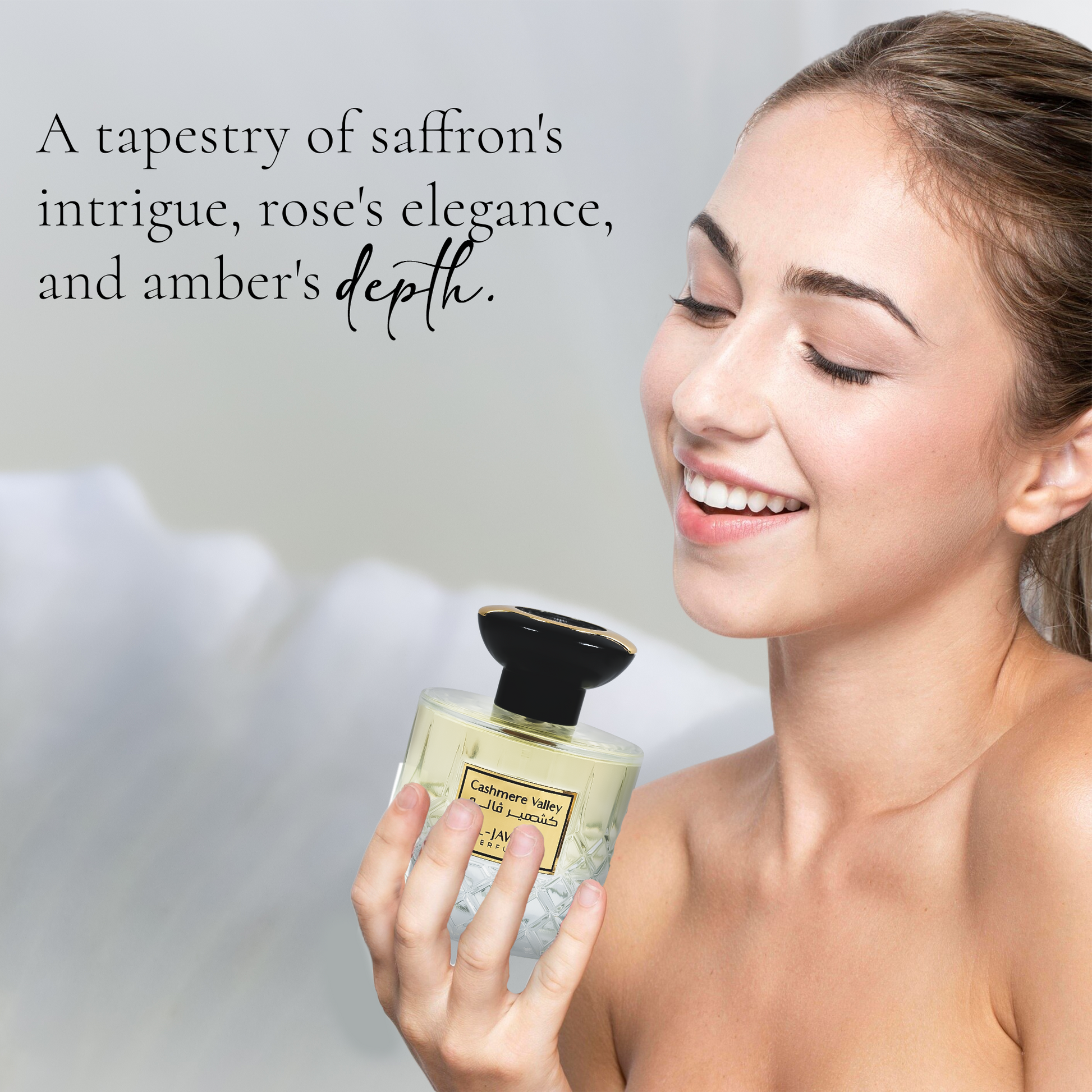 Revealing a hidden valley of luxury, Cashmere Valley is a captivating fragrance that unfolds like a secret story. The scent opens with a touch of exotic saffron, its warmth immediately softened by the timeless elegance of a rose in full bloom.